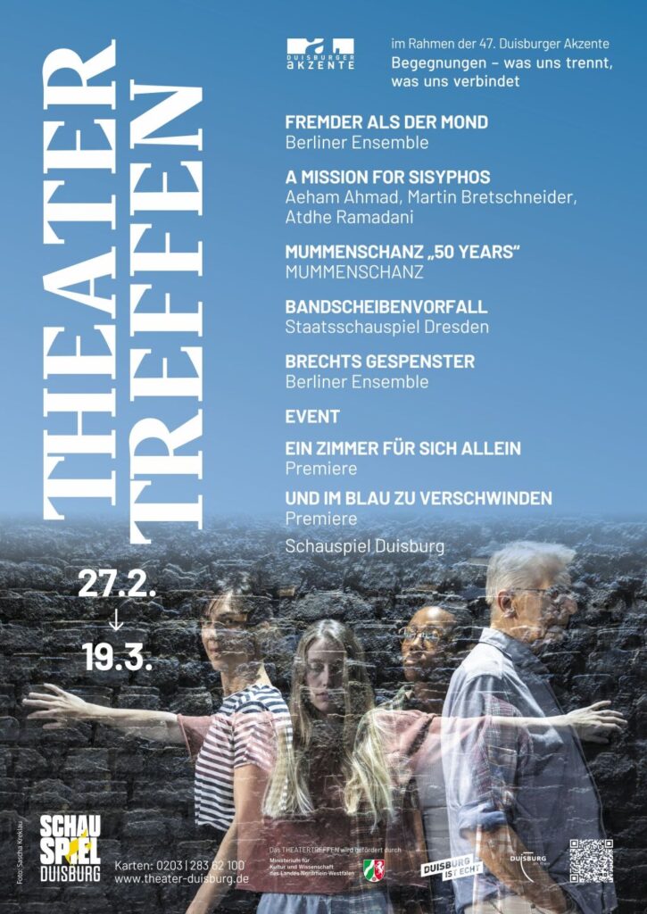 Ein ungewöhnlicher Theaterabend feiert am 13. März am Theater Duisburg Premiere im Rahmen des Theatertreffens beim Akzente-Festival: und im Blau zu verschwinden entstand ausgehend von Zsuzsa Bánks Roman Sterben im Sommer, ist aber weit entfernt von dem, was man üblicherweise unter „Dramatisierung“ oder „Bühnenadaption“ versteht. Es ist die Übersetzung eines literarischen Kunstwerks in ein theatrales.