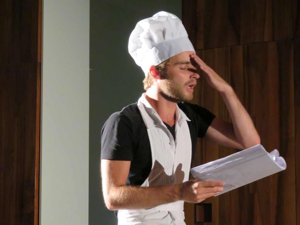 Režisérka Kamila Polívková vytvořila svou inscenací groteskní komentář k tezím autora. K fenomenálnímu úspěchu večera přispívá velkou měrou také výjimečný výkon Stanislava Majera – je velmi zábavné slyšet z jeho úst slova, která mu podsunul Zábranský. Komický odstup od vyřčeného Majer herecky precizně interpretuje se smyslem pro timing a gradaci – berlínské publikum výkon odměnilo dlouhým potleskem. V následující diskuzi se David Zábranský pokusil srovnat české a německé kulturní prostředí, v jeho hře ostatně české umělce přitahuje a inspiruje právě německé divadlo. Zmínil také odlišný postoj české a německé společnosti k tématu migrace a na pořad dne přišla i kvalita českého kebabu, který se vyrábí příznačně z podřadného německého mraženého polotovaru. Zábranský připustil, že během spolupráce se Studiem Hrdinů zjistil, že musí svůj text, který je na mnoha místech vážným komentářem české reality, satiricky odlehčit. Kamila Polívková vyzdvihla na textu právě jeho otevřenou strukturu, která umožňuje různé interpretace. Majer si lehce rýpnul do autora, když mu předvídal brzké udělení Státní ceny z rukou prezidenta Zemana. Ve foyeru divadla se pak ještě dlouze diskutovalo se všemi umělci a diváci využili možnost osobního setkání s českými divadelníky.