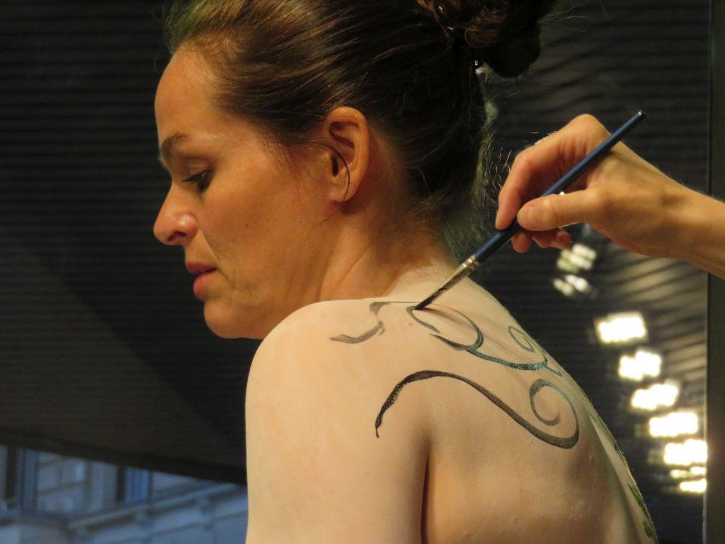 Režisér Eberhard Köhler a scénografka Anita Fuchs vytvořili v galerii Českého centra tři svébytné scénické instalace a diváci putovali s židlemi prostorem vždy do nové scenérie. Použili pestrou škálu divadelních prostředků od klasické činohry, přes loutkohru a videomapping až po performativní bodypainting.