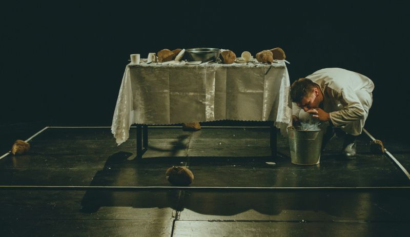 Invaders who will stop at nothing to win. Outgunned defenders. Heroes become losers. Victims mythologised as heroes. Memories of hunger. Documents of the madness of destruction. A belief in superiority that ends in murderous fantasies. And strategies for survival that require absolutely inhumane decisions. Extreme orders that lead to extreme suffering. Heroic figures who become losers, only to win again in the end. Nazis, Soviets, humans. 67/871 is an extreme piece of theatre.